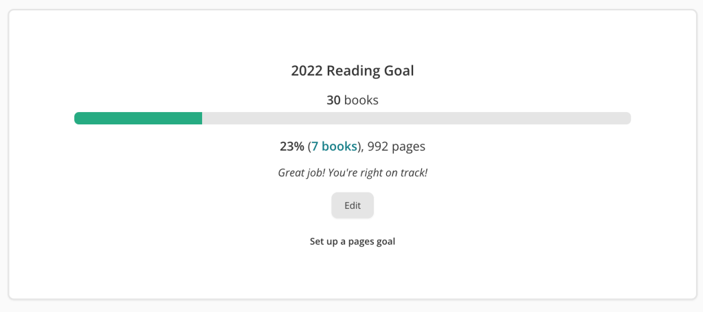 I hope your reading is going better than mine. I’m going to try “Joy Reading” for a while and simply read whatever I want. That might include a whole bunch of graphic novels, some steamy romances, or maybe just a bunch of YA fantasy. Who knows? I’m a mood reader and it’s time I come to terms with it.