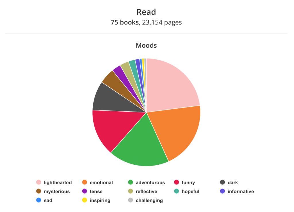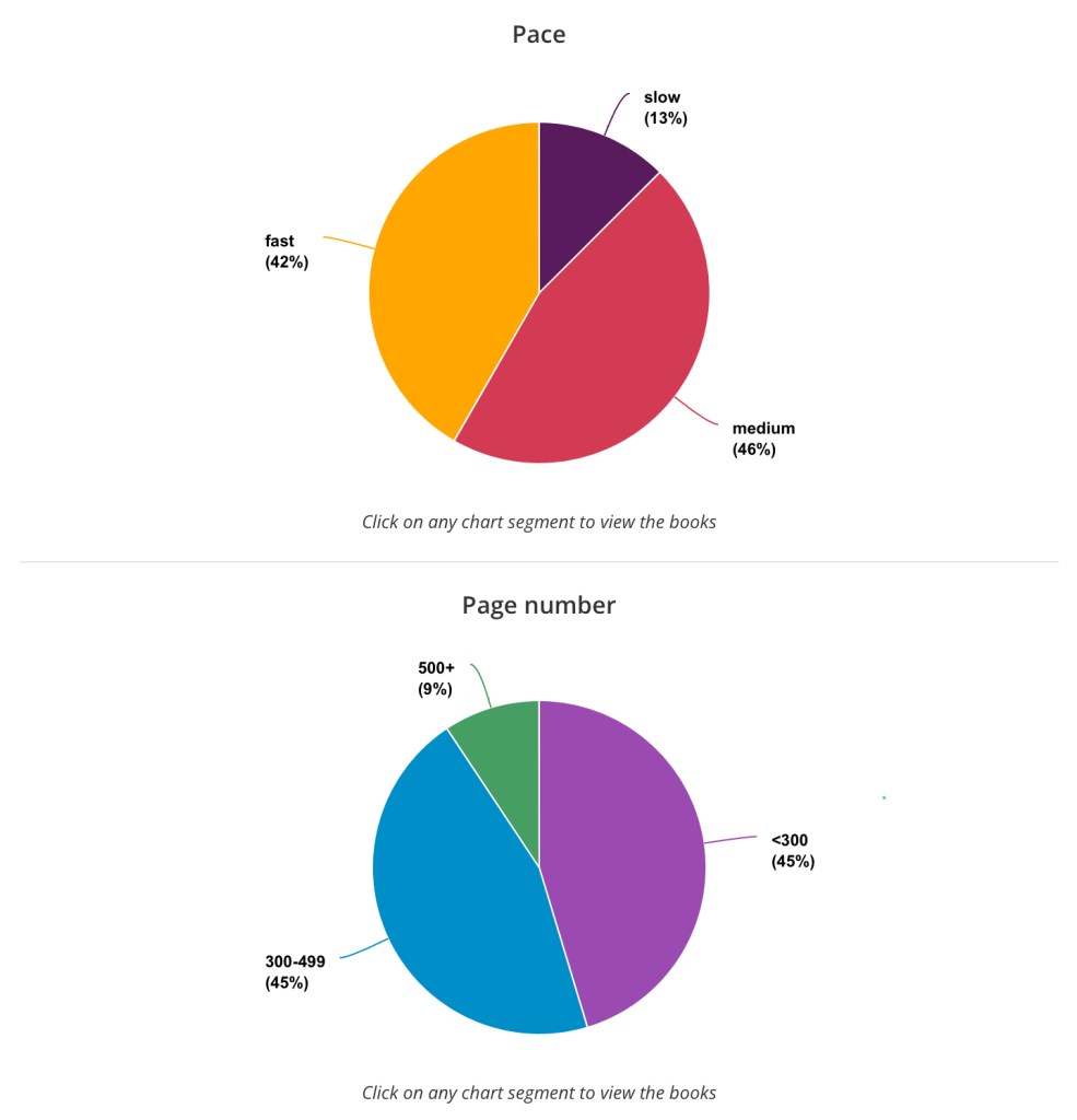 Here are the Storygraph breakdowns for anybody who is interested 🙂