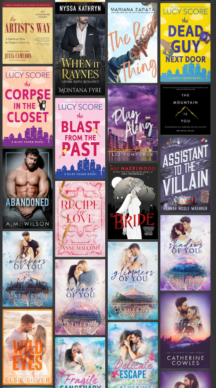 Catherine Cowles was my late-year find. I accidentally read the last book in one of her series after seeing a reel on Instagram with a quote in it. Yes, I’m one of those people who will drop everything to read a book I heard about from one Instagram post but won’t read the stuff I literally have on my shelves already. The Lost and Found series is about (you guessed it) women on the run from dangerous pasts and the men who help them patch up their broken pieces. Oh boy, do I love a damsel-in-distress meets an over-protective hero. I’m not proud of it, but I love it. Again, I love a scene where our heroes are about to die and get saved at the last moment.