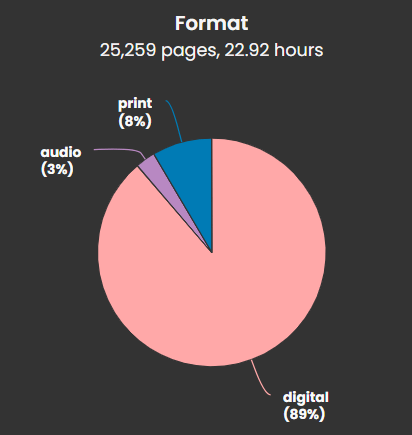 This year I read 71 books adding up to 26,026 pages! Compared to 2023’s 79 and 26,955 pages. Fewer books, but close page counts. I’m a couple of books off from hitting the same pages but I think that’s because I read much larger books this year.